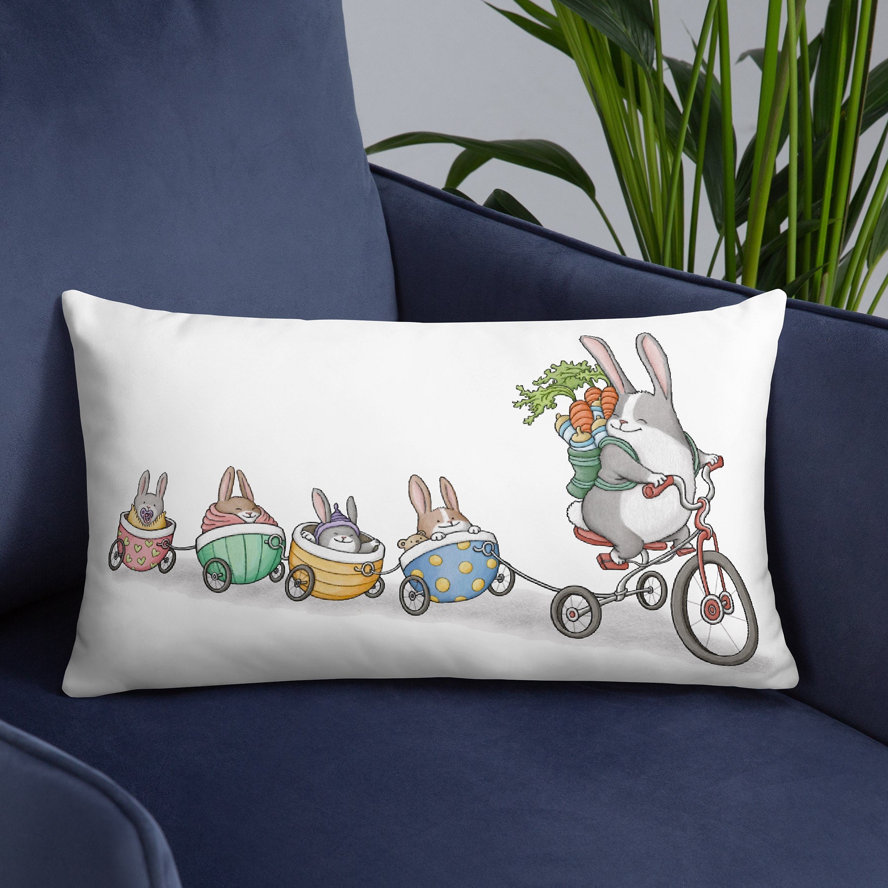 Lumbar Throw Pillow - 20 x 12 - Momma Rabbit with Babies in Tow