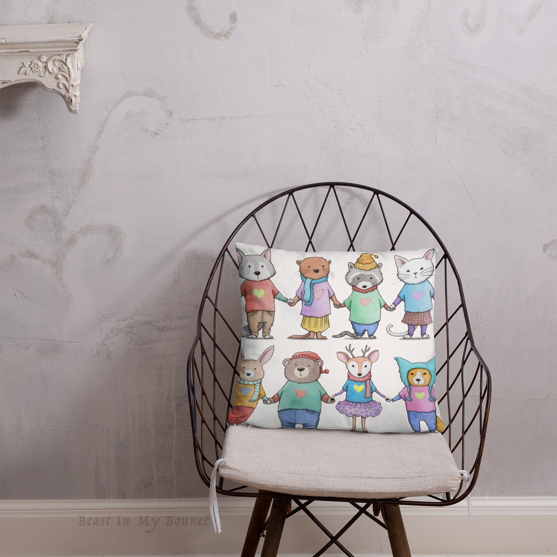 Square Throw Pillow 18 x 18- Paws-In-Paws