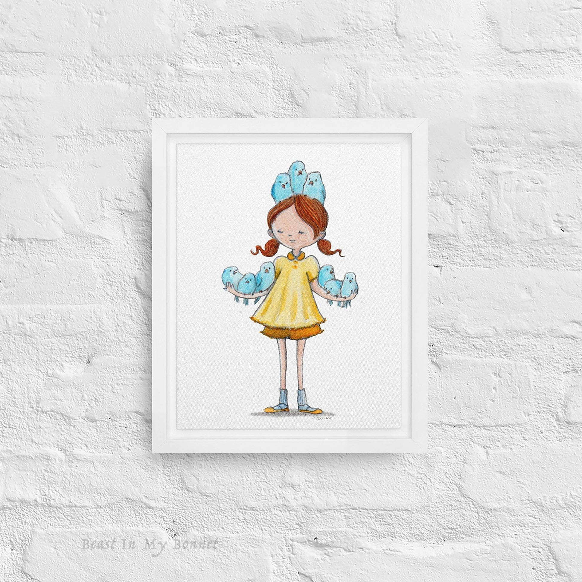 Framed Canvas 8 x 10 - Girl with Bluebird Friends