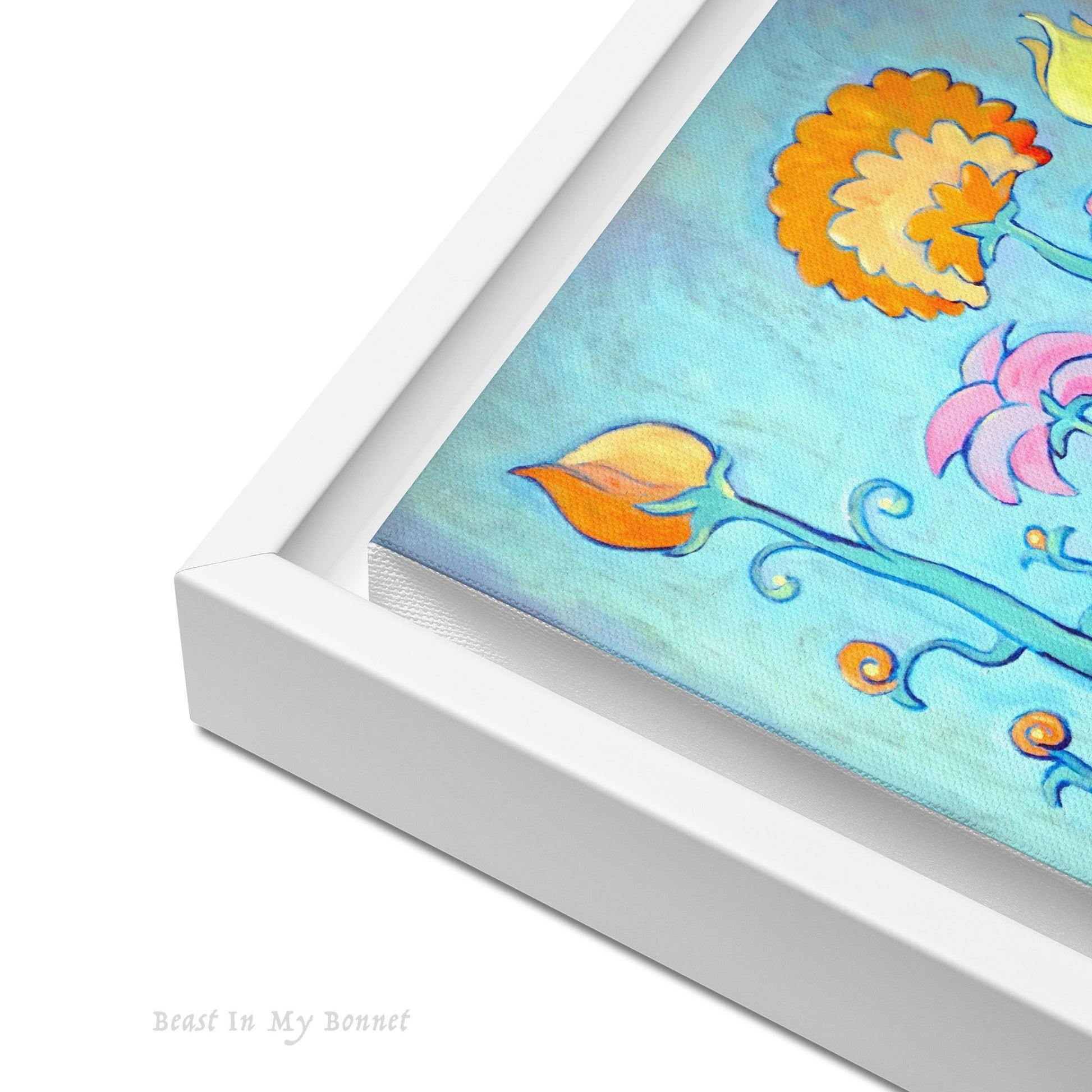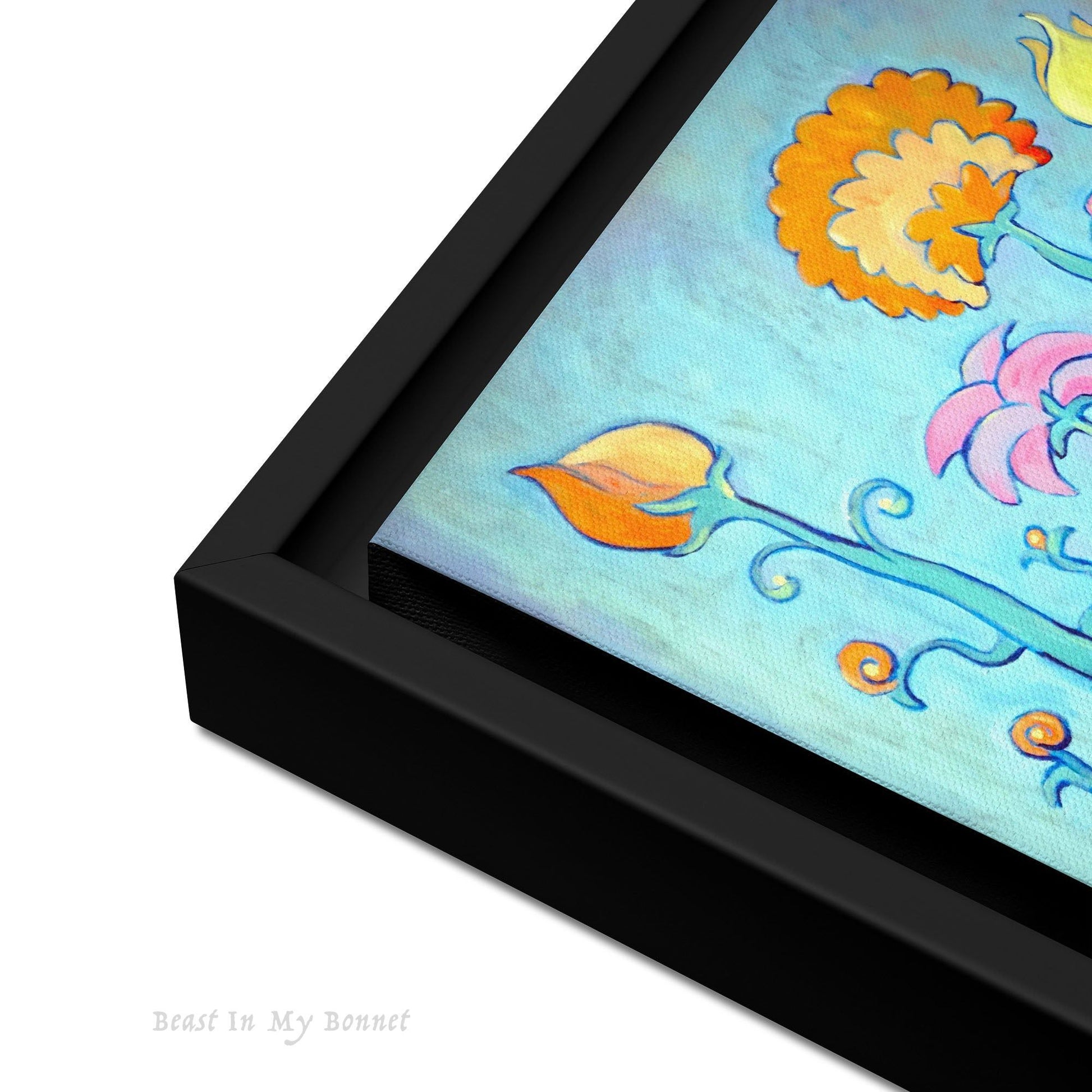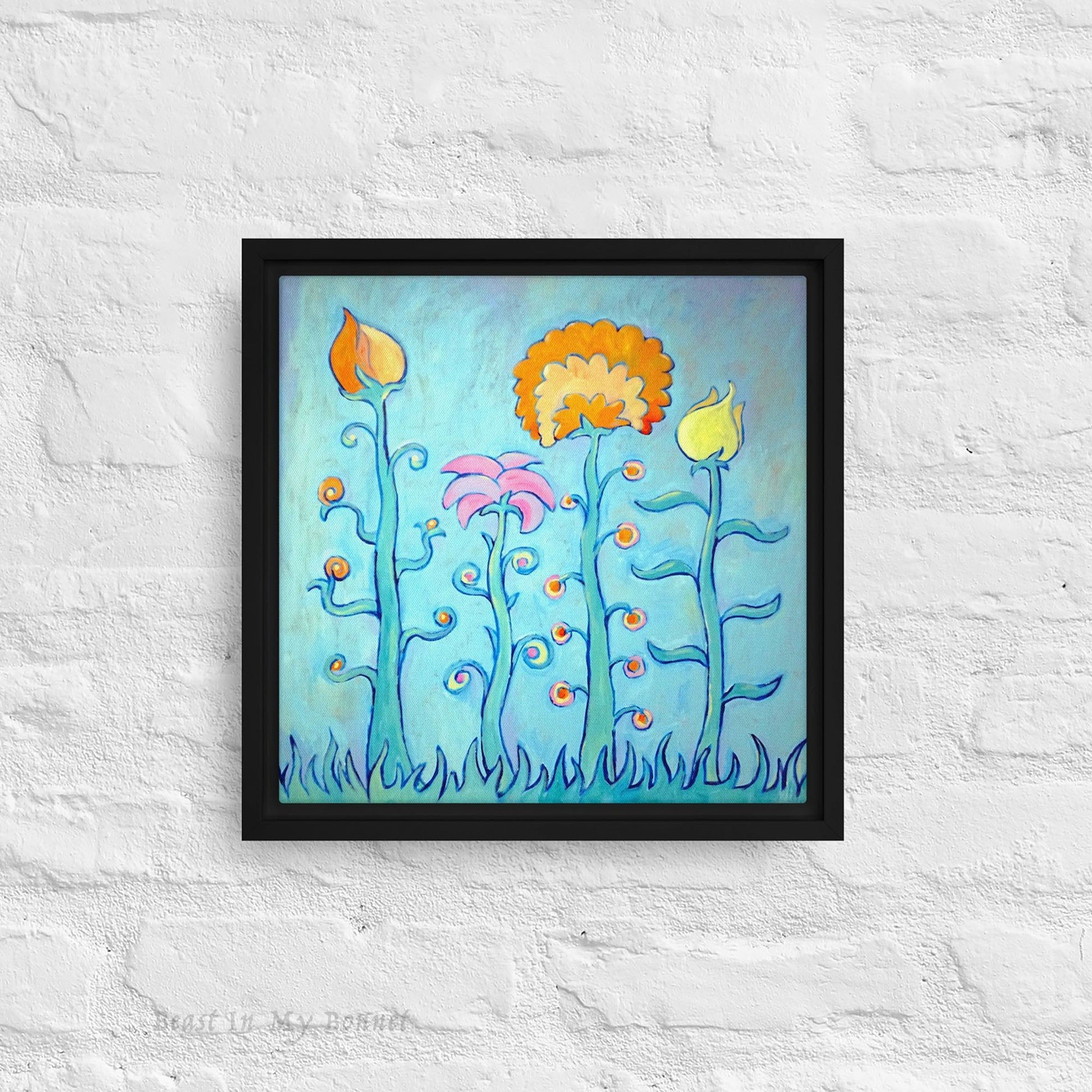 Framed Canvas - 12 x 12 - Tall Flowers on Blue