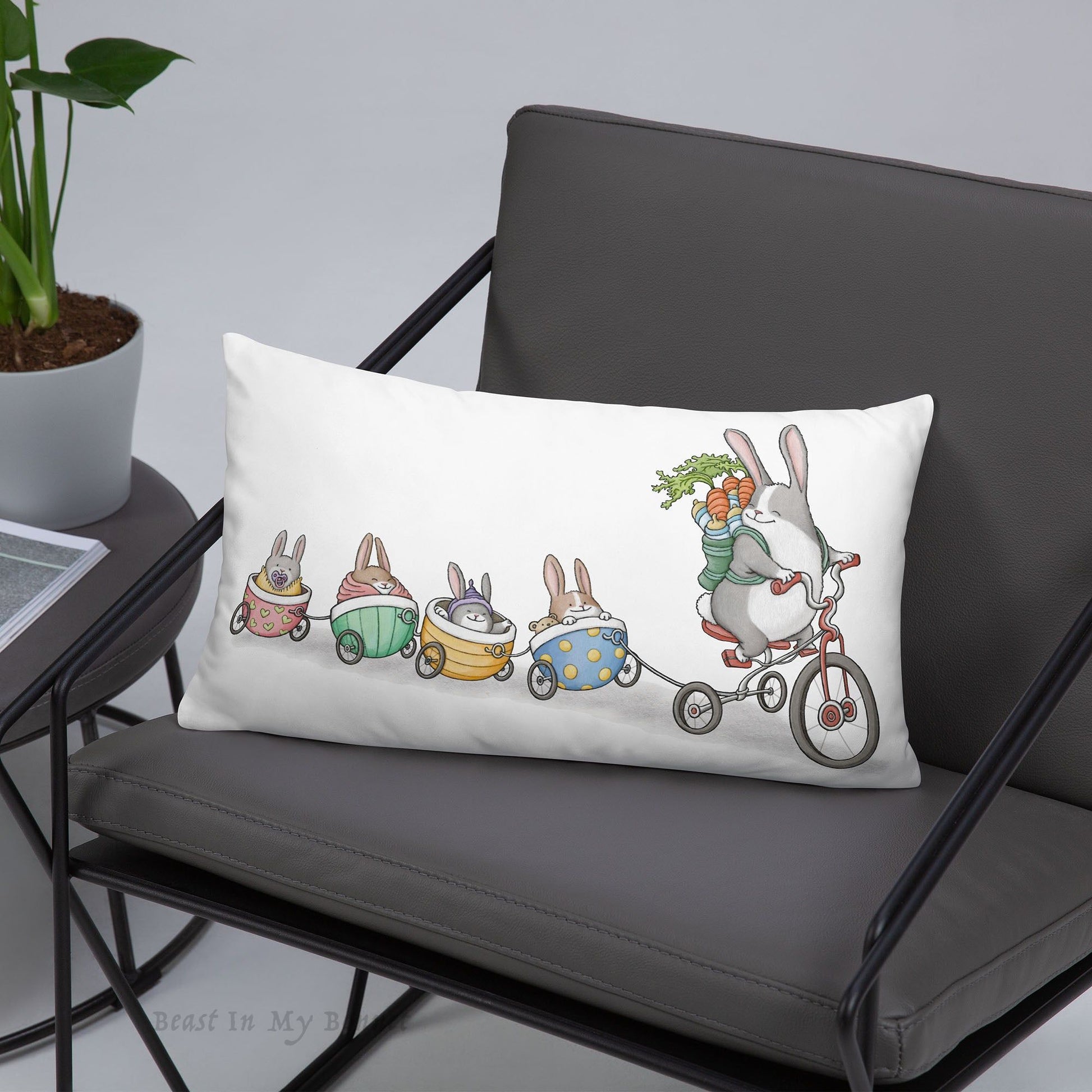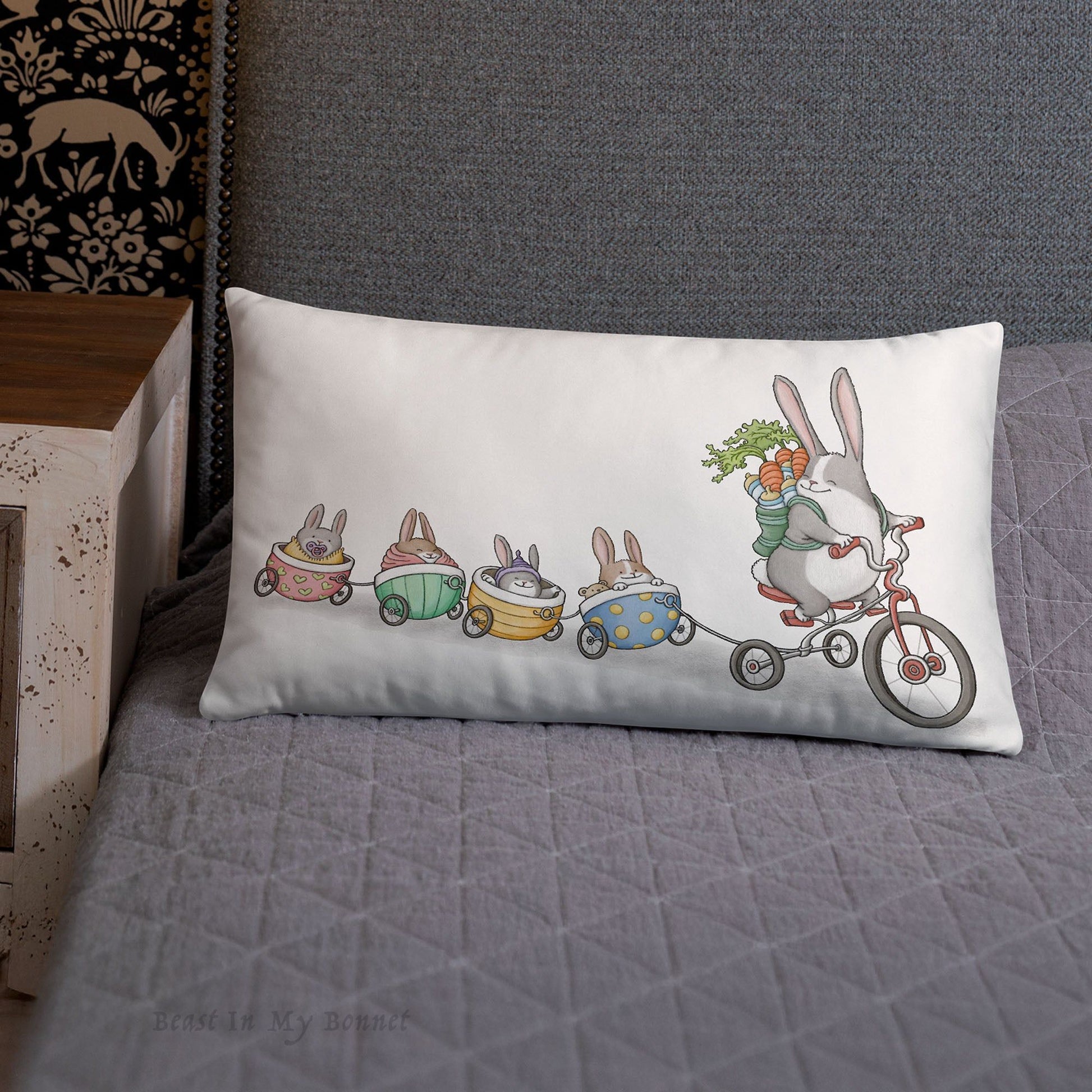 Lumbar Throw Pillow - 20 x 12 - Momma Rabbit with Babies in Tow